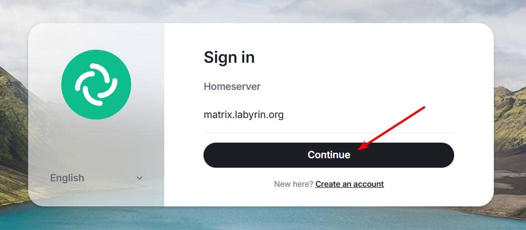 Continue to the homeserver login page: