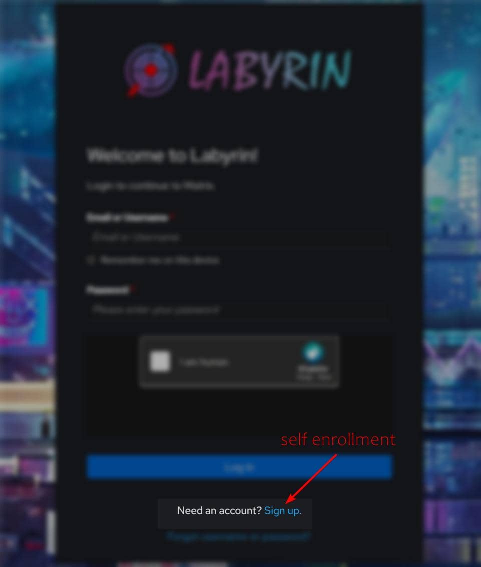 https://auth.labyrin.org/Username / password registration is NOT open (March 9 2026):